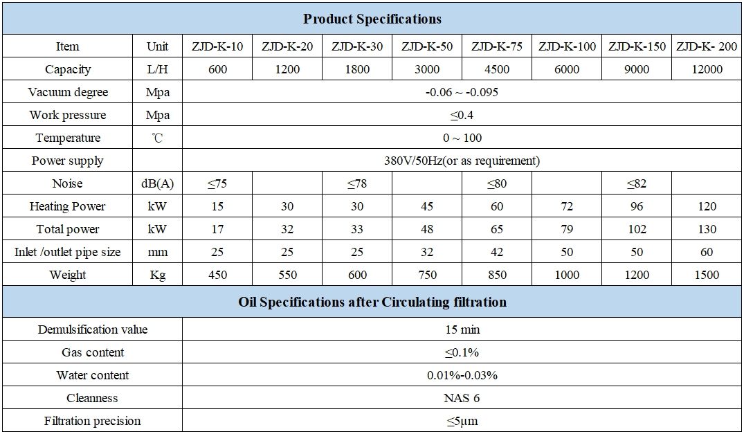 1. ZJD-K is composed of ZJD vacuum hydraulic oil purifier and BK press filter machine,the two functions can be worked together or worked separately.